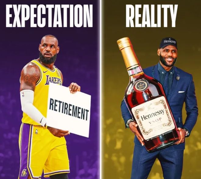 但事实证明,詹姆斯只是在打广告,他的这个“决定二”只是跟一个知名白兰地酒的品牌联名或者代言,根本就没有退役的事情。在这个广告被公布的第二天,詹姆斯就笑嘻嘻地参加湖人队的合练了。